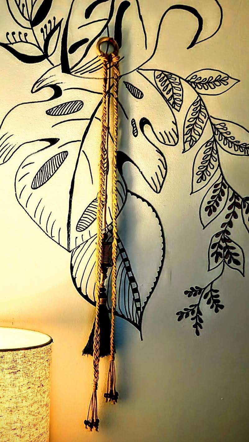 Macrame wall hanging for your any room. Buttery yellow braided strands with spool as accent. Budget friendly for just $15. Best gift for friends and family.